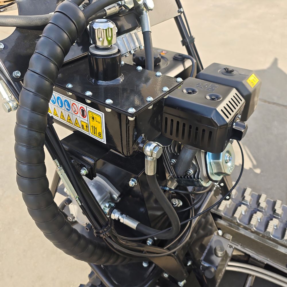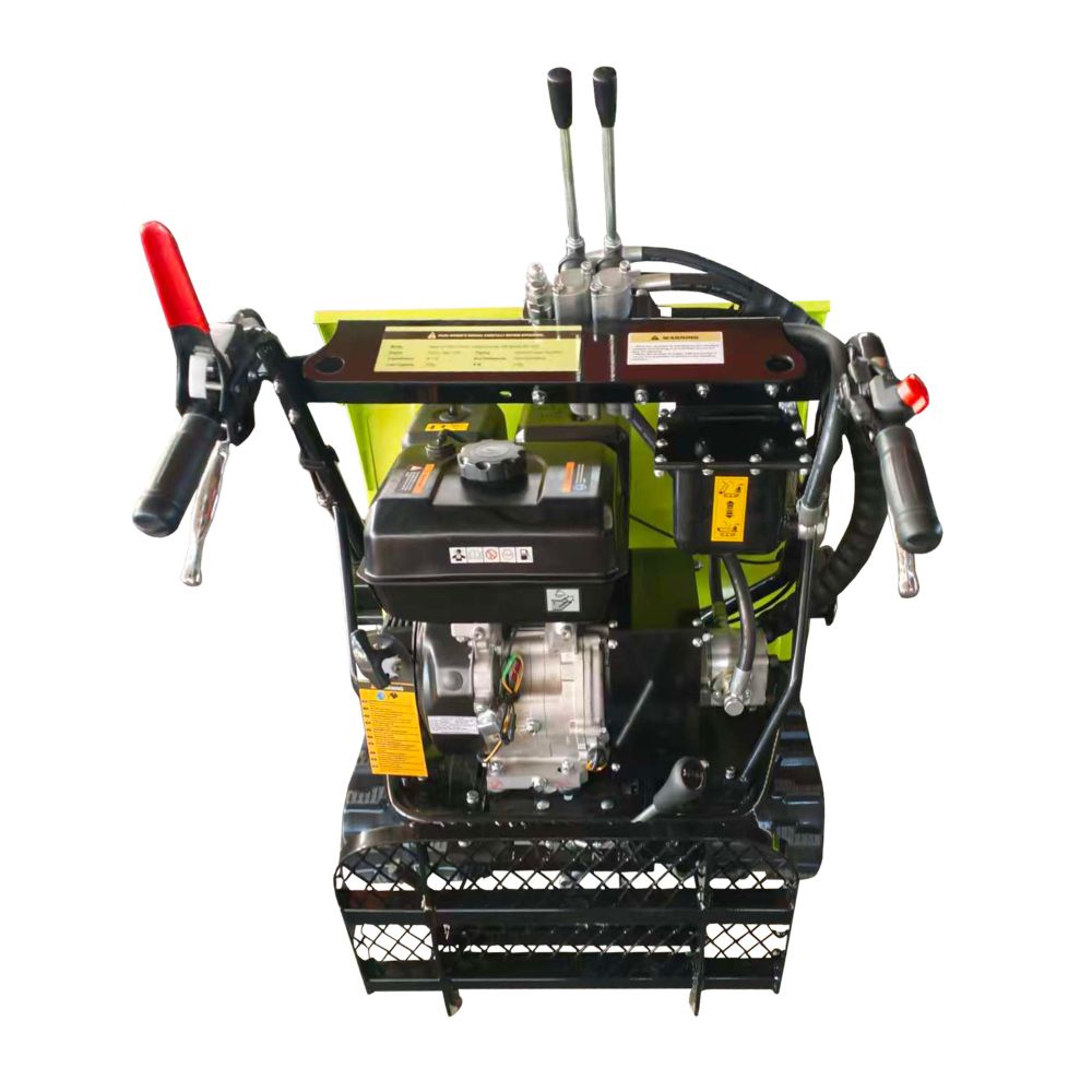 A hydraulic tipping and self-load bucket are incorporated into the design, facilitating effortless loading and unloading of materials. The oversized gearbox is built to manage the significant torques generated by the engine, guaranteeing safe and reliable operation. This motorized tracked dumper is suitable for transporting various materials such as sand, cement, logs, bricks, soil, and more.