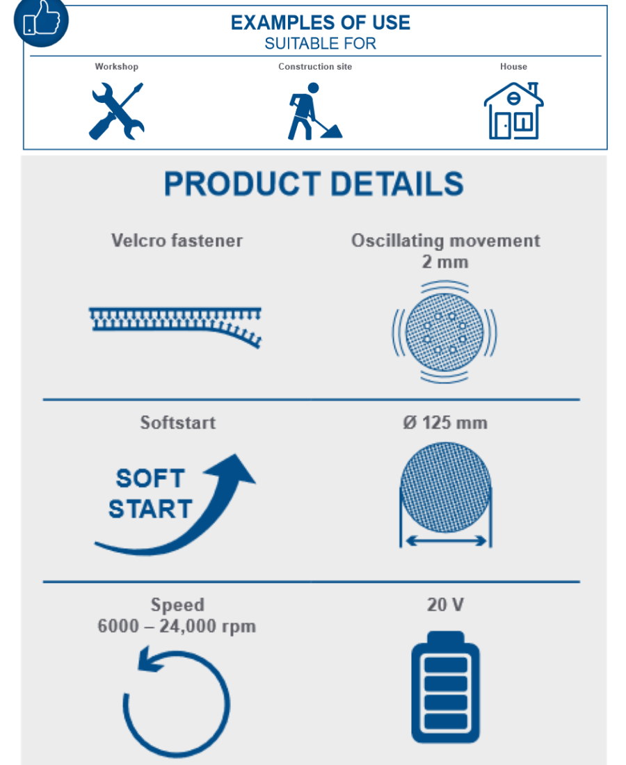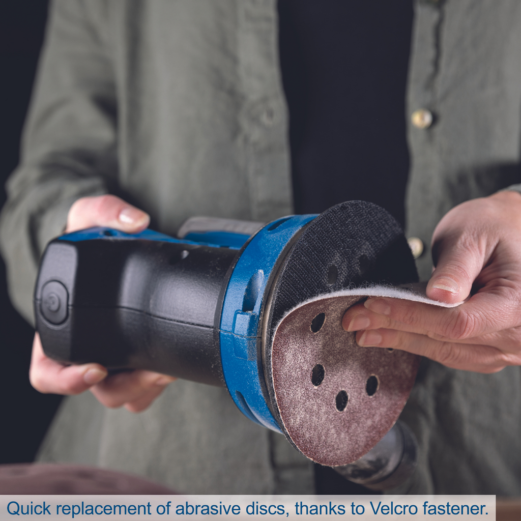 Quick replacement of abrasive discs, thanks to Velcro fastener