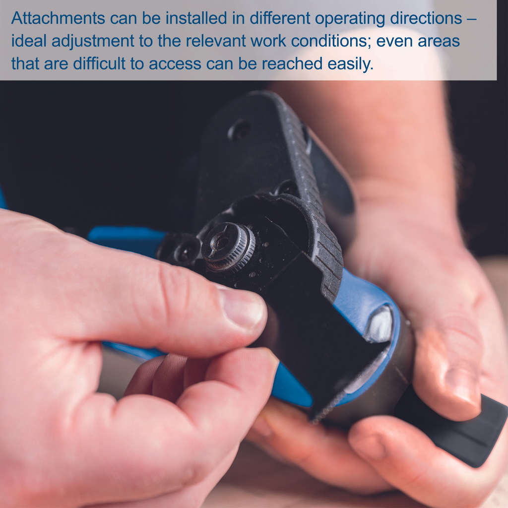 3.2° oscillation angle – ideal for many uses with timber, metal or plastic