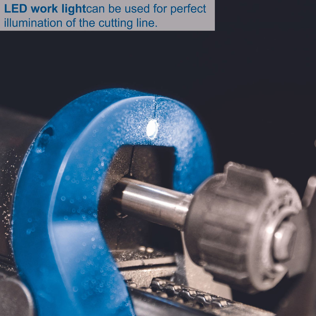 Integrated LED work light with additional 10 seconds of light after switching off the device ensures perfect illumination of the cutting line