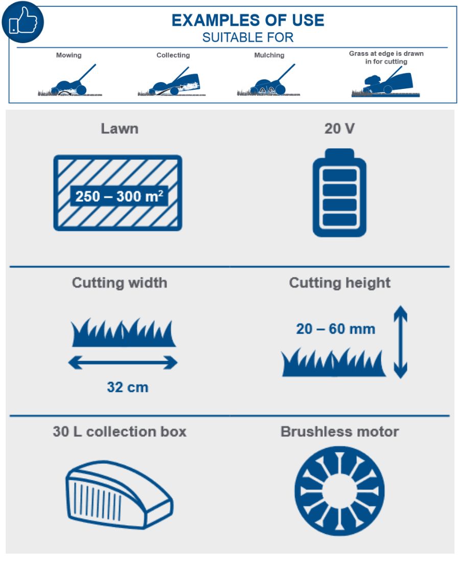 Scheppach Cordless Lawn Mower Features: