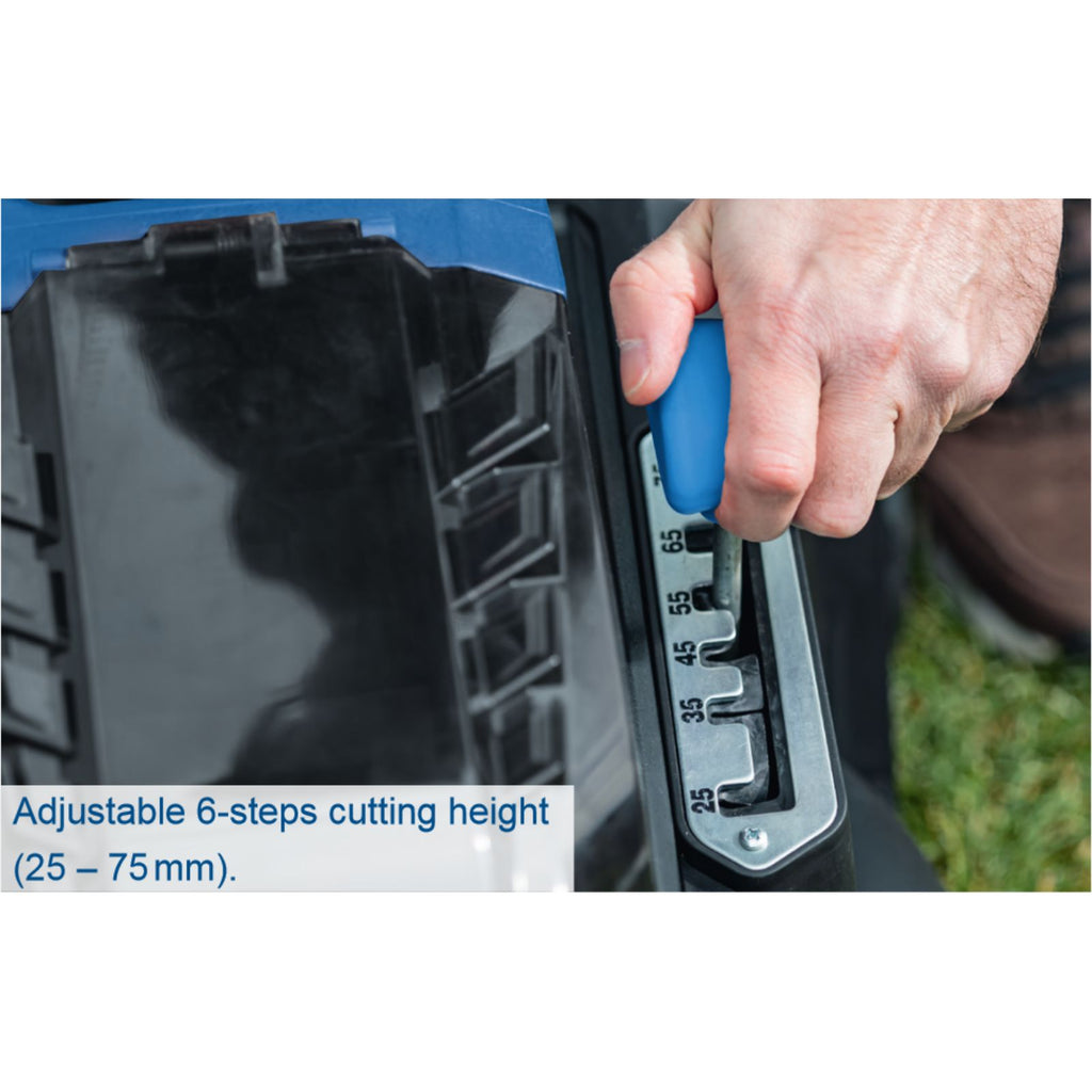 Adjustable 6-steps cutting height (25 – 75 mm)