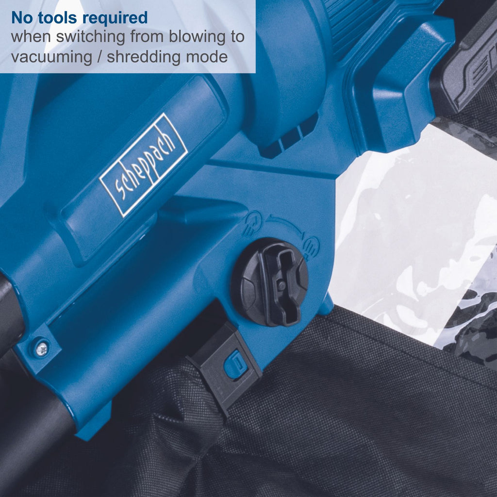 Scheppach Cordless Leaf Vacuum/Blower/Shredding Features: