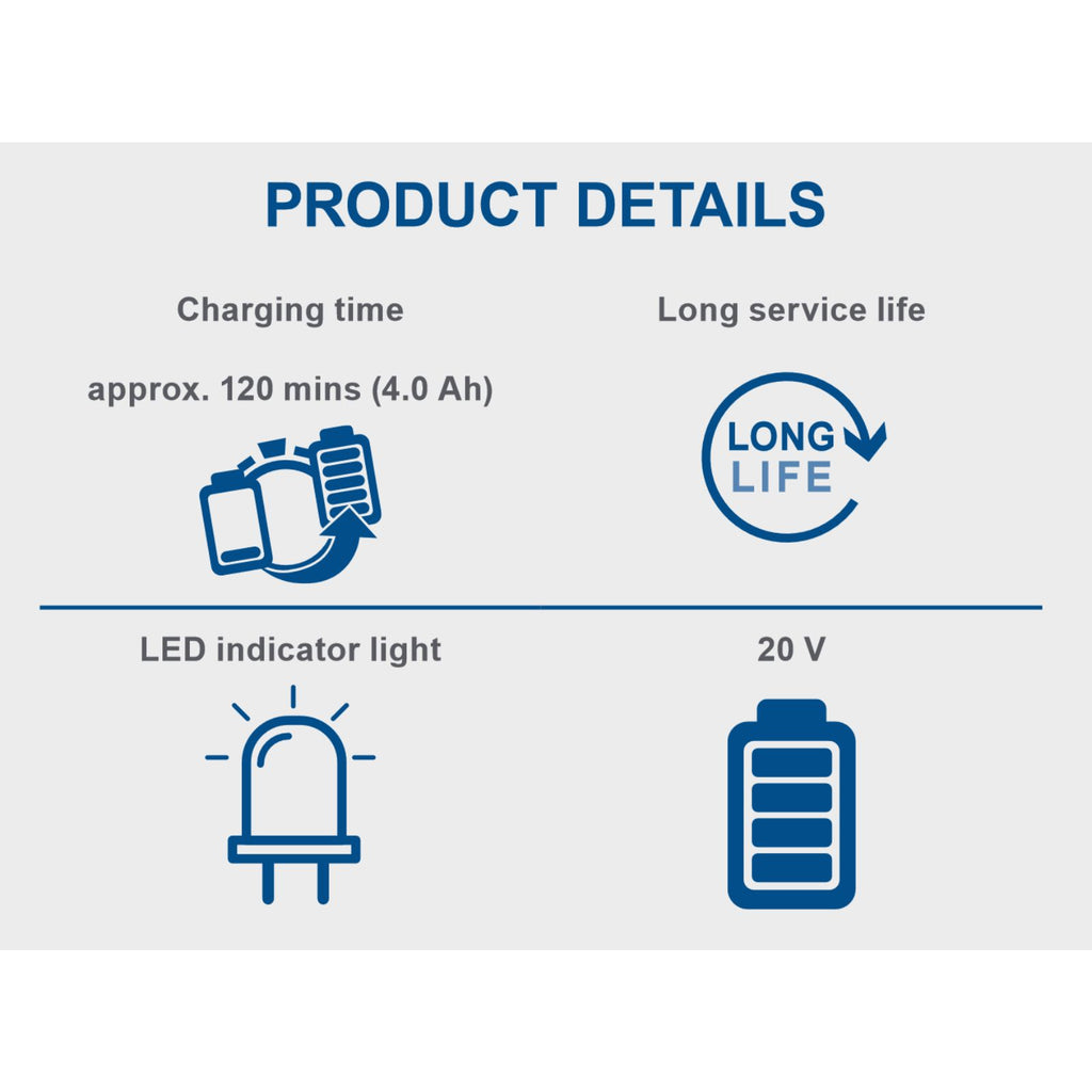 Scheppach 20V Battery Charger Features: